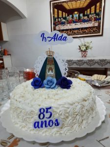 Neste dia quatorze de Maio de dois mil e vinte e um, demos graças a Deus pela vida, história, presença e missão da Ir. Alda Christina Michielin, pelos oitenta e cinco anos de vida celebrado, inspirado e vivido segundo o Carisma do Instituto Jesus Maria José “ a Imitação da Sagrada Família de Nazaré”. E neste, celebramos mais de cinquenta anos vida consagrada voltada totalmente para a inteira e entrega oblação ao Senhor, no Instituto Jesus Maria José.