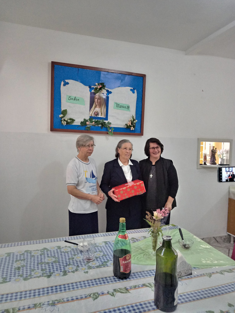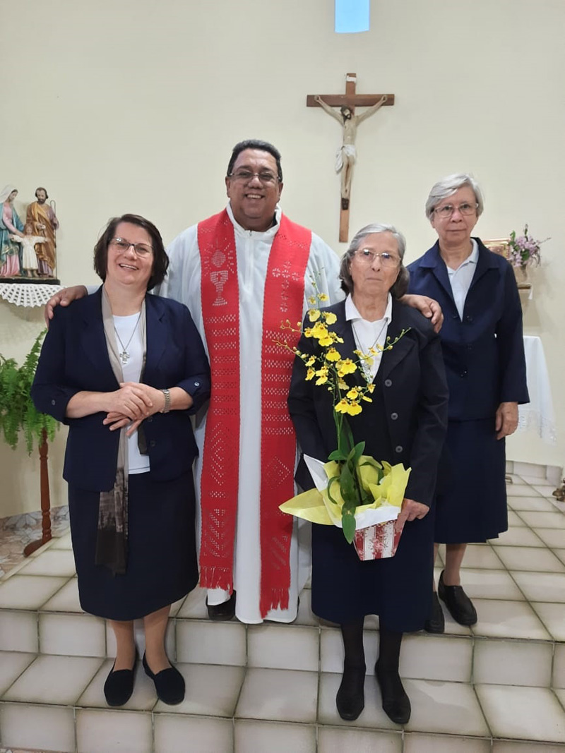 Neste dia quatorze de Maio de dois mil e vinte e um, demos graças a Deus pela vida, história, presença e missão da Ir. Alda Christina Michielin, pelos oitenta e cinco anos de vida celebrado, inspirado e vivido segundo o Carisma do Instituto Jesus Maria José “ a Imitação da Sagrada Família de Nazaré”. E neste, celebramos mais de cinquenta anos vida consagrada voltada totalmente para a inteira e entrega oblação ao Senhor, no Instituto Jesus Maria José.